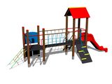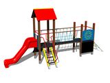 2x vež, šmýkačka, strieška v tvare "A", bariéra, šikmý výlez s lanom a nášľapy z HDPE, šikmý sieťový výlez, kolmý rebrík, šikmý výlez s nášľapy a kovovými madlami, počítadlo, kresliaca tabuľa, most s lanovým zábradlím. Viac informácií