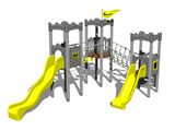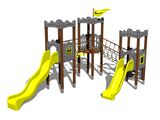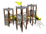 3x vež, 2x šmýkačka, 4x bariéra z HDPE, šikmý sieťový výlez, šikmý lanový most medzi vežami, kolmá lezecká stena na veži s nášľapmi, vlajka, 3x cimburie z HDPE, lanový most s nášľapmi. Viac informácií