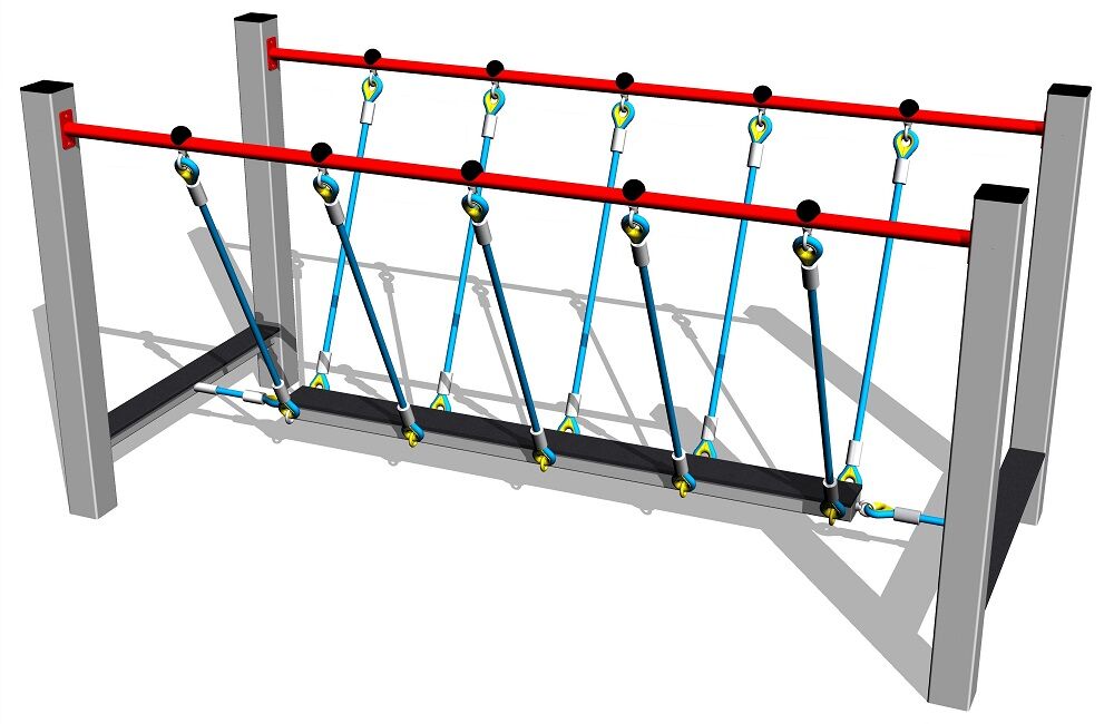 Lanová lávka so zaveseným trámom - celokovová, výška pádu do 1 m, ako dopadová plocha postačí trávnik, dĺžka 2 m. Na výber sú dve farebné varianty konštrukcie - hnedá a strieborná. Viac informácií