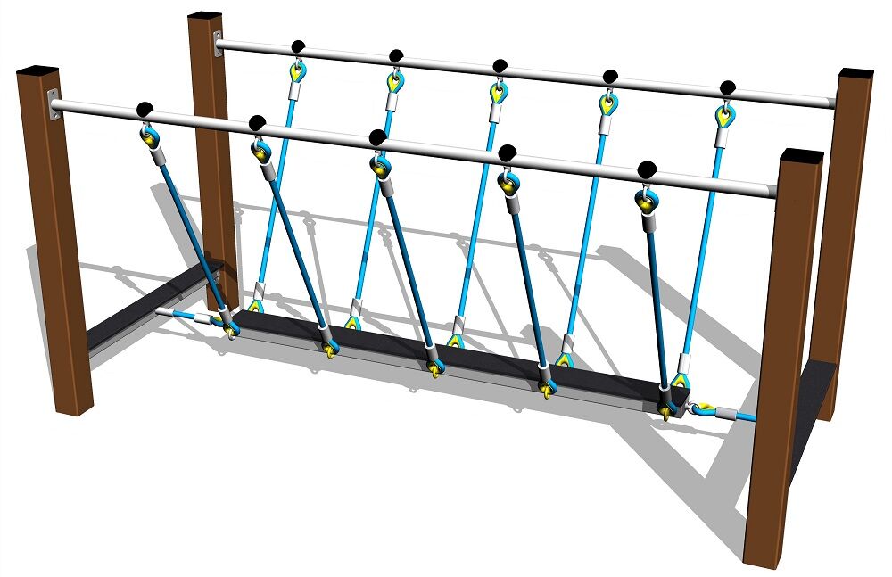 Lanová lávka so zaveseným trámom - celokovová, výška pádu do 1 m, ako dopadová plocha postačí trávnik, dĺžka 2 m. Na výber sú dve farebné varianty konštrukcie - hnedá a strieborná. Viac informácií