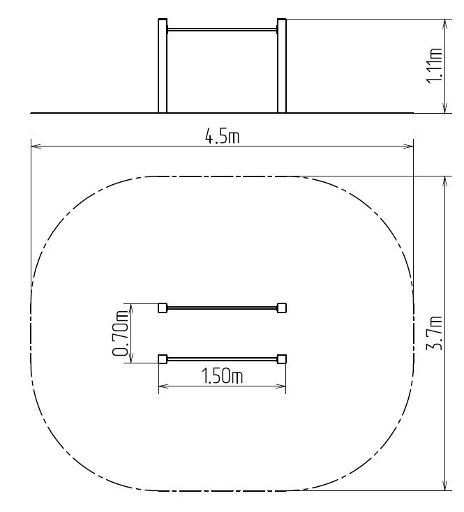 Bradla - celokovová, výška pádu 1 m, ako dopadová plocha postačí trávnik. Na výber sú tri farebné varianty konštrukcie - červená, hnedá a modrá. Viac informácií