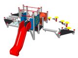 Lanová lávka, veža so šmýkačkou, preliezacie tunel, 5x step, sieť, 3x kladina, 4x podesta, 2x bariéra. Viac informácií
