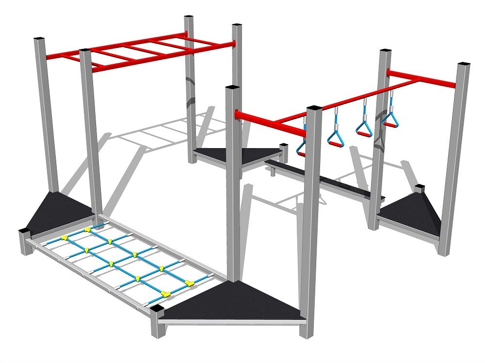 Ručkovadlo, 4x lanové kruhy, kladina, 4x podesta, sieť. Na výber sú dve farebné varianty konštrukcie - hnedá a strieborná. Viac informácií