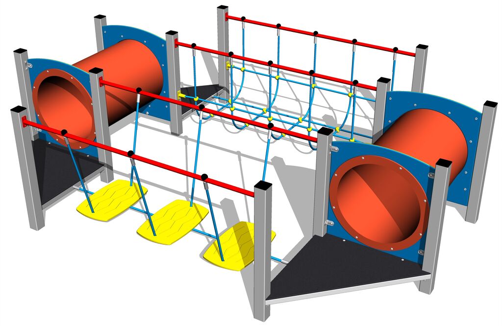 Laná a siete sú vyrobené z materiálu HERKULES (16 mm lana z polypropylénu s vnútorným oceľovým jadrom) a sú spojované plastovými spojmi. Podesty sú vyrobené z HPL (vysokotlakový laminát, ktorý sa vyznačuje vysokou farebnou stálosťou, odolnosťou proti poškriabaniu a odolnosťou proti vode). Preliezacie tunel je vyrobený z polyetylénu , ktorý je UV stabilný a vyznačuje sa vysokou farebnou stálosťou. Nášľapy sú vyrobené z vysoko kvalitného plastu HDPE (vysokotlakový, celofarbený polyetylén, ktorý sa vyznačuje vysokou farebnou stálosťou, odolnou proti UV žiareniu a hlavne bezpečnosťou, pretože je nelámavý a nehrozí tak žiadne nebezpečné zranenie ostrými úlomkami). Všetok spojovací materiál je pozinkovaný alebo nerezový.