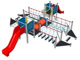 Lanová lávka so zaveseným trámom, lanová lávka so sieťou, lanová lávka s nášľapmi, sieť, preliezacie tunel, 2x kladina, 8x podesta, 2x vež, 2x šmýkačka, 4x bariéra, 2x kolmý rebrík. Viac informácií