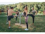 Pokyny: Zdvihnite nohu a postavte ju na držadlo stretchera. Nakloňte sa dopredu a pokúste sa čo najúčinnejšie natiahnuť nohu, paže a chrbát. Vymeňte nohy a cvik opakujte.