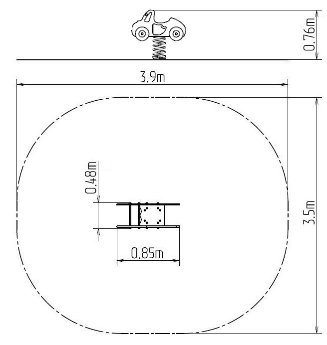 Obľúbené detské pružinové hojdačka - AUTÍČKO. Výška pádu do 1 m, ako dopadová plocha postačí trávnik. Viac informácií
