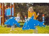 Hojdačka na pružine - DELFÍN. Výška pádu do 1 m, ako dopadová plocha postačí trávnik. Viac informácií