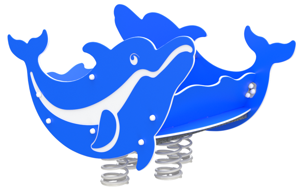 Hojdačka na pružine - DELFÍN. Výška pádu do 1 m, ako dopadová plocha postačí trávnik. Viac informácií