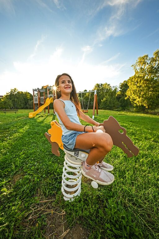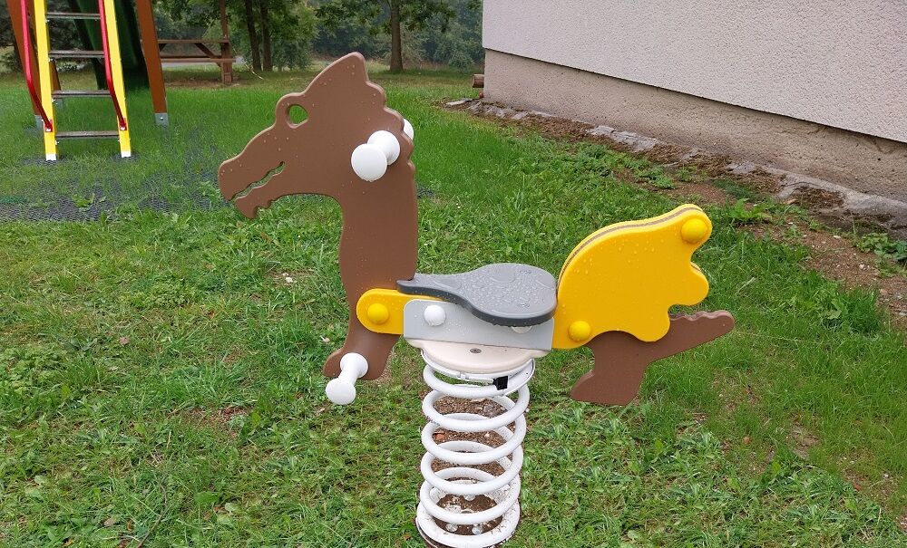 Obľúbené detské pružinové hojdačka - DRAK. Výška pádu do 1 m, ako dopadová plocha postačí trávnik. Viac informácií