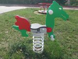 Bezpečný gumový povrch pod hojdačky na pružine 1 x 1 m, farba - červená, zelená a čierná.