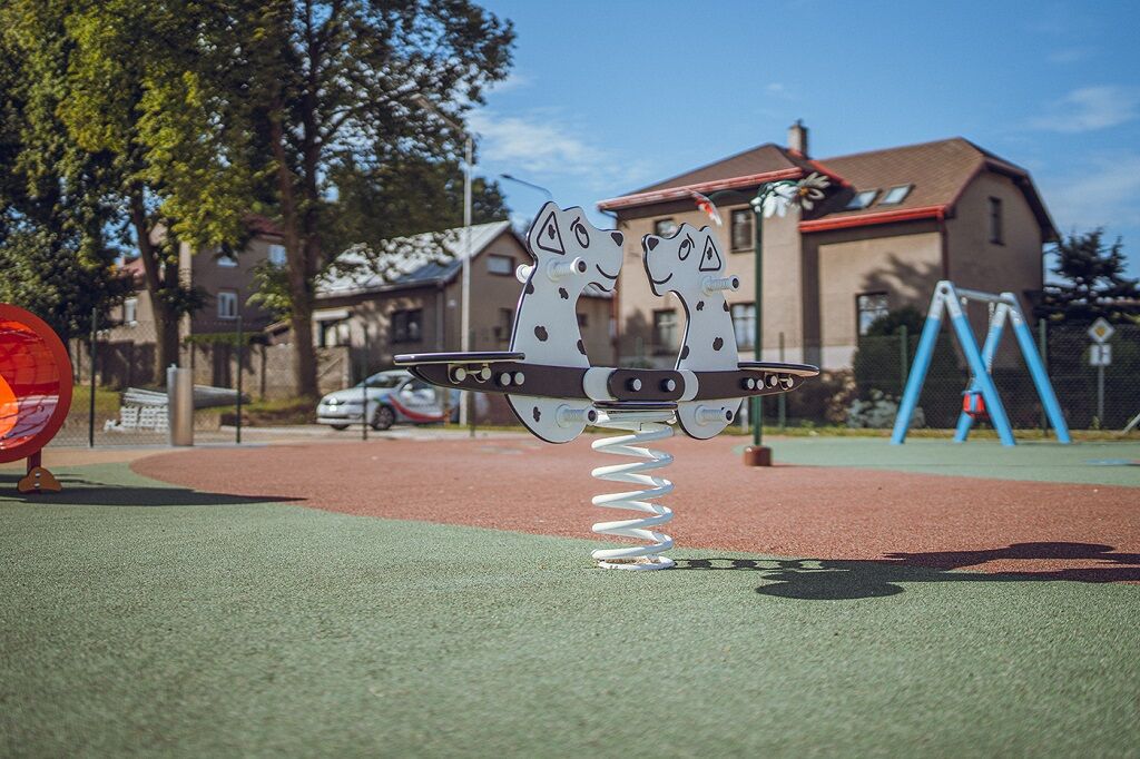 Obľúbené detské pružinové hojdačka - DUO DALMATIN. Výška pádu do 1 m, ako dopadová plocha postačí trávnik. Viac informácií
