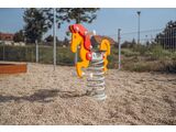 Bezpečný gumový povrch pod hojdačky na pružine 1 x 1 m, farba - červená, zelená a čierná.