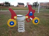 Bezpečný gumový povrch pod hojdačky na pružine 1 x 1 m, farba - červená, zelená a čierná.