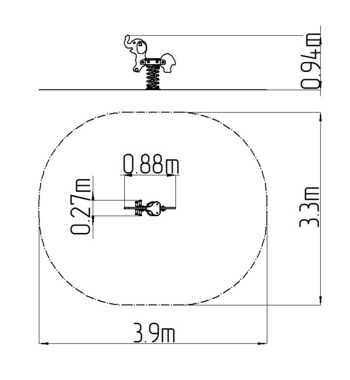 Bezpečný gumový povrch pod hojdačky na pružine 1 x 1 m, farba - červená, zelená a čierná.