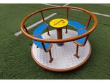 Kolotoč na sedenie KO140K (priemer 1,4 m), celokovový s protišmykovou podlahou, s otočným stredom a sedačkami z HDPE. Výška pádu do 1 m, ako dopadová plocha postačí trávnik. Viac informácií