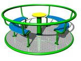 Kolotoč na sedenie KO180K (priemer 1,8 m) - priemer 1,8 m, celokovový s protišmykovou podlahou, s otočným stredom a sedačkami z HDPE. Výška pádu do 1 m, ako dopadová plocha postačí trávnik. Viac informácií