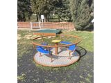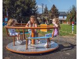 Kolotoč na sedenie KO180K (priemer 1,8 m) - priemer 1,8 m, celokovový s protišmykovou podlahou, s otočným stredom a sedačkami z HDPE. Výška pádu do 1 m, ako dopadová plocha postačí trávnik. Viac informácií