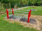 Lanová lavica - celokovová, výška pádu do 1 m, ako dopadová plocha postačí trávnik, dĺžka 2,26 m. Na výber sú tri farebné varianty konštrukcie - červená, hnedá a modrá. Viac informácií