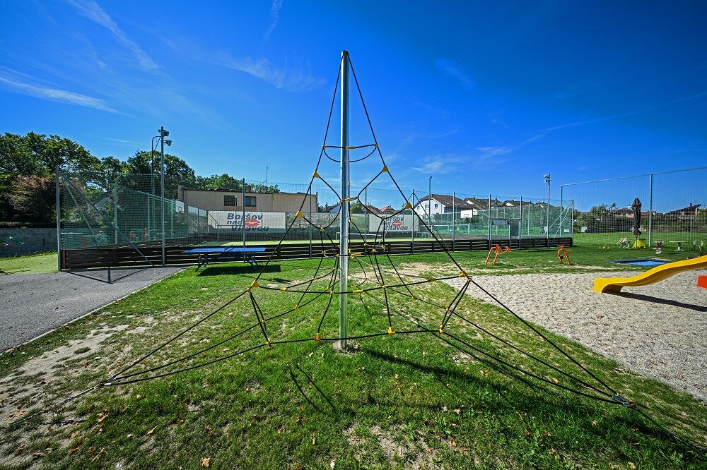 Lanová pyramida - výška 2 m, výška pádu 1 m, ako dopadová plocha postačí trávnik.