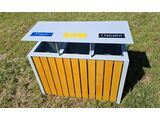 Odpadkový kôš na triedený odpad je vyrobený zo smrekového dreva. Povrchová úprava tohto dreva spočíva v impregnácii a aplikácii vrchného lazúrovacieho laku. Táto konštrukcia je uložená do betónového lôžka. Vložka odpadkového koša je vyrobená z pozinkovanej ocele. Všetky kovové prvky sú proti korózii chránené duplexným nástrekom práškovou vypaľovacou farbou podľa RAL. Všetok spojovací materiál je pozinkovaný alebo nerezový.