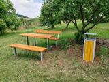 Odpadkový kôš je vyrobený zo smrekového dreva. Povrchová úprava tohto dreva spočíva v impregnácii a aplikácii vrchného lazúrovacieho laku. Táto konštrukcia je uložená do betónového lôžka.