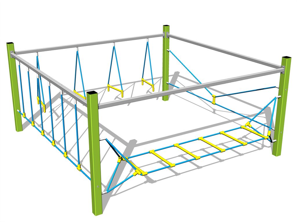 Laná sú vyrobené z materiálu HERKULES (16 mm lana z polypropylénu s vnútorným oceľovým jadrom) a sú spojované plastovými spojmi. Všetok spojovací materiál je pozinkovaný alebo nerezový.