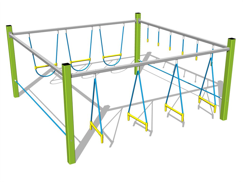 Opičia dráha - celokovová, výška pádu 1 m, ako dopadová plocha stačí trávnik. Na výber sú štyri farebné varianty konštrukcie: modrá, červená, hnedá a limetková. Viac informácií