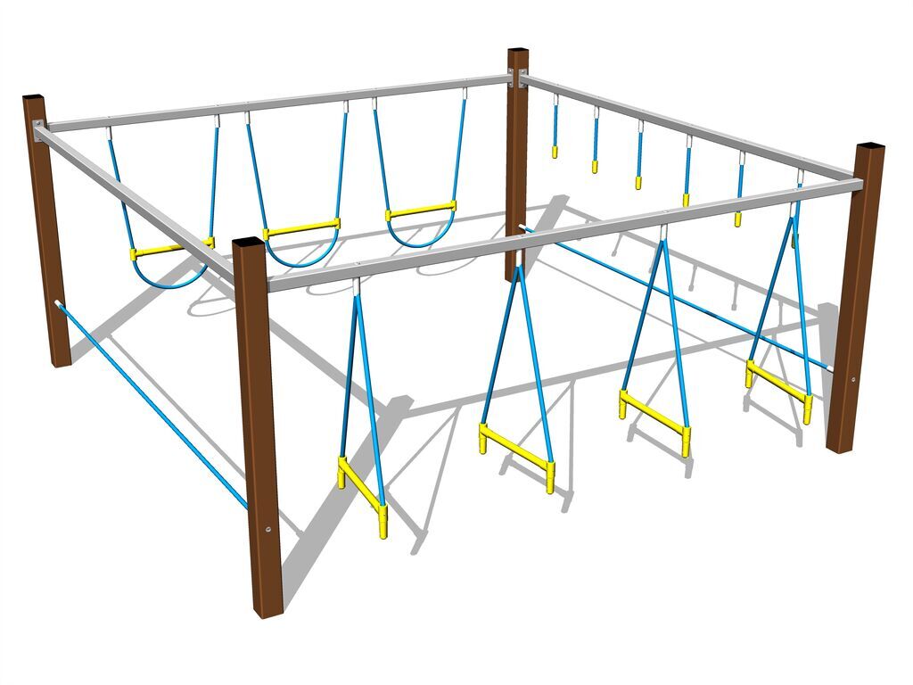 Opičia dráha - celokovová, výška pádu 1 m, ako dopadová plocha stačí trávnik. Na výber sú štyri farebné varianty konštrukcie: modrá, červená, hnedá a limetková. Viac informácií