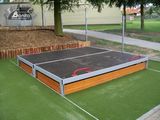 Pieskovisko je vyrobené z lepených hranolov. Toto riešenie zaisťuje maximálne možnú ochranu proti vzniku prasklín, ktoré sú bežné u výrobkov z mimo stredového dreva. Povrchová úprava týchto hranolov spočíva v impregnácii a trojvrstvovej aplikácii vrchného lazúrovacieho laku, splňujúceho podmienky normy EN 71/3 (bezpečné pre detské hračky).