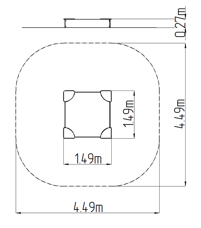 | Rozmery: | 1,49 x 1,49 x 0,27 m |