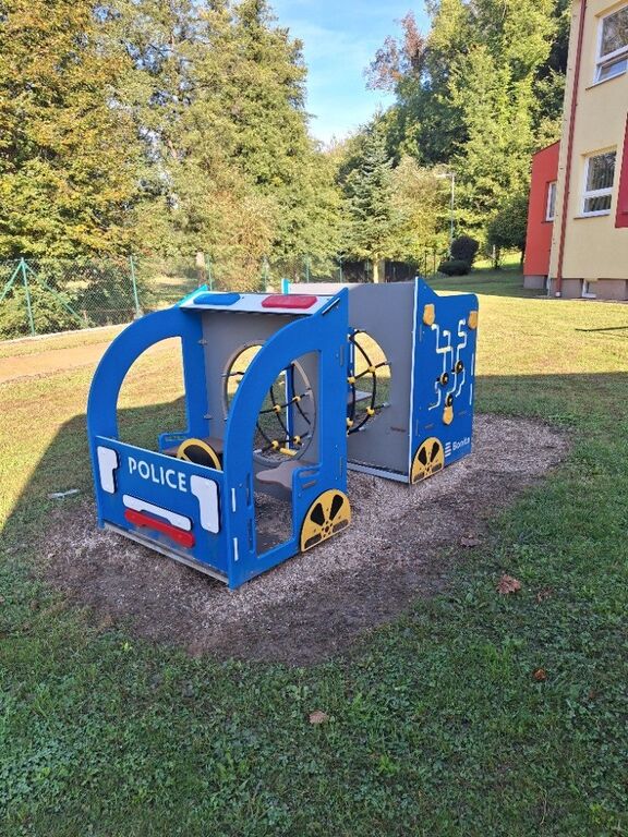 Preliezka s lanovým tubusom - Policajné auto PP101K - celokovový - Výška pádu do 1 m, ako dopadová plocha postačí trávnik. Viac informácií