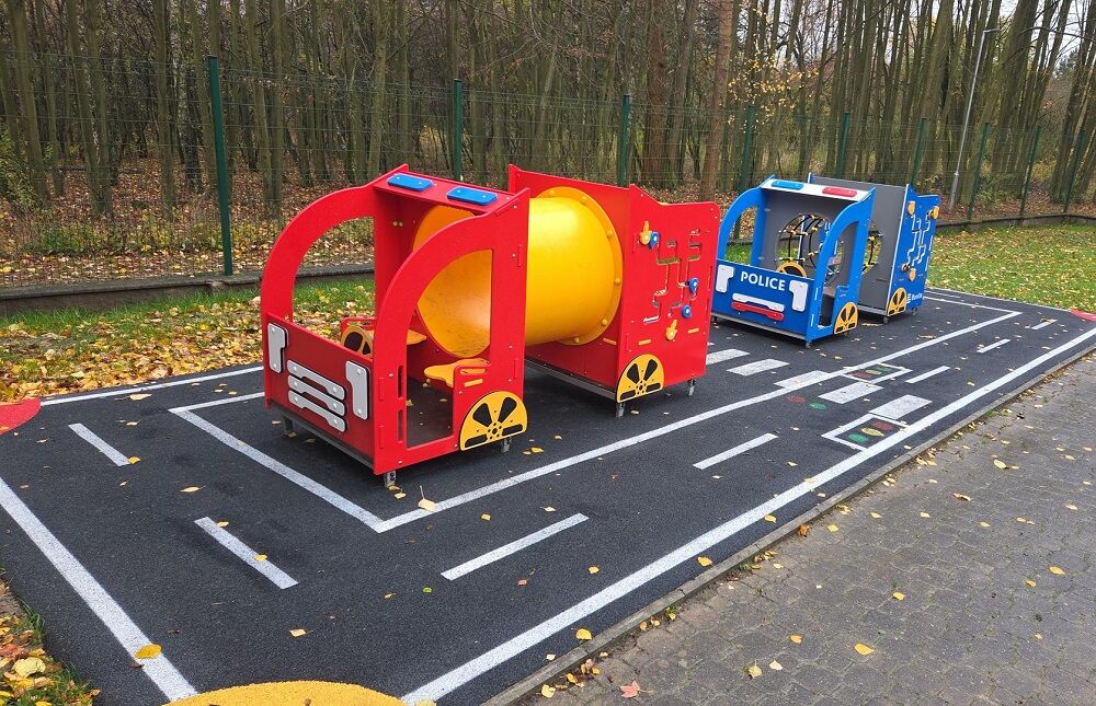 Nosná konštrukcia policajného auta je vyrobená z konštrukčnej ocele, ktorá je proti korózii chránená povrchovou úpravou zinkovaním, čím sa docieli veľmi výrazného predĺženia životnosti herného prvku alebo duplexným nástrekom práškovou vypaľovacou farbou podľa RAL. Tieto konštrukcie sú uložené do betónového lôžka. Všetky ďalšie kovové prvky sú tiež upravované zinkovaním alebo duplexným nástrekom práškovou vypaľovacou farbou podľa RAL..