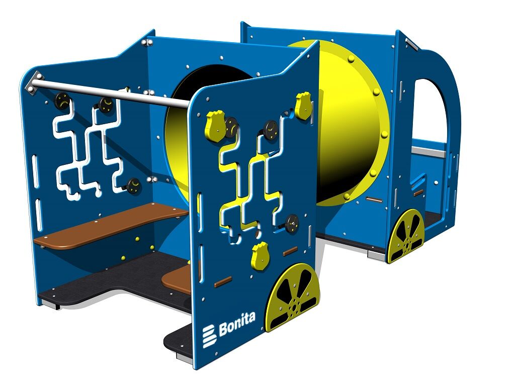 Všetky ďalšie časti herného prvku sú vyrobené z vysoko kvalitného plastu HDPE (vysokotlakový, celoprobarvený polyetylén, ktorý sa vyznačuje vysokou farebnou stálosťou, odolnosťou proti UV žiareniu a hlavne bezpečnosťou, pretože je nelámavej a nehrozí tak žiadne nebezpečenstvo zranenia detí ostrými úlomky). Preliezacie tunel je vyrobený z polyetylénu, ktorý je UV stabilná a vyznačuje sa vysokou farebnou stálosťou. Všetok spojovací materiál je pozinkovaný alebo nerezový.