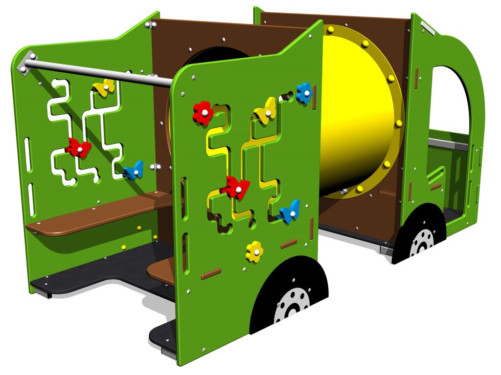 Všetky ďalšie časti herného prvku sú vyrobené z vysoko kvalitného plastu HDPE (vysokotlakový, celoprobarvený polyetylén, ktorý sa vyznačuje vysokou farebnou stálosťou, odolnosťou proti UV žiareniu a hlavne bezpečnosťou, pretože je nelámavej a nehrozí tak žiadne nebezpečenstvo zranenia detí ostrými úlomky). Preliezacie tunel je vyrobený z polyetylénu, ktorý je UV stabilná a vyznačuje sa vysokou farebnou stálosťou. Všetok spojovací materiál je pozinkovaný alebo nerezový.