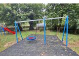 Reťazová dvojhojdačka RH6221K - celokovová, výška pádu 1,5 m, 1x sedadlo Normal, 1x sedadlo Hniezdo (priemer 1 m). Na výber sú tri farebné varianty konštrukcie - hnedá, modrá a červená. Viac informácií