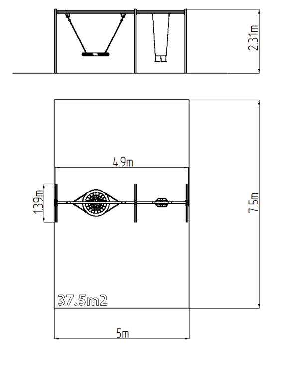 | Povrch, tlmiaci pád: | podľa normy EN 1177 37,5 m2 |