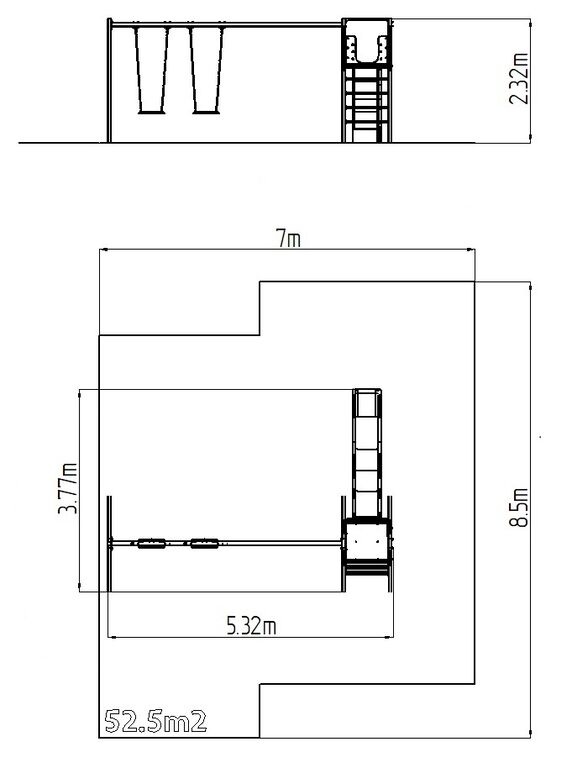 Rozmery: 5,32 x 3,77 x 2,32 m
