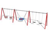 Reťazová päťhojdačka RH6521K - celokovová, výška pádu 1,5 m, 2x sedadlo Baby, 2x sedadlo Normal, 1x sedadlo Hniezdo (priemer 1 m). Na výber sú tri farebné varianty konštrukcie - hnedá, modrá a červená. Viac informácií