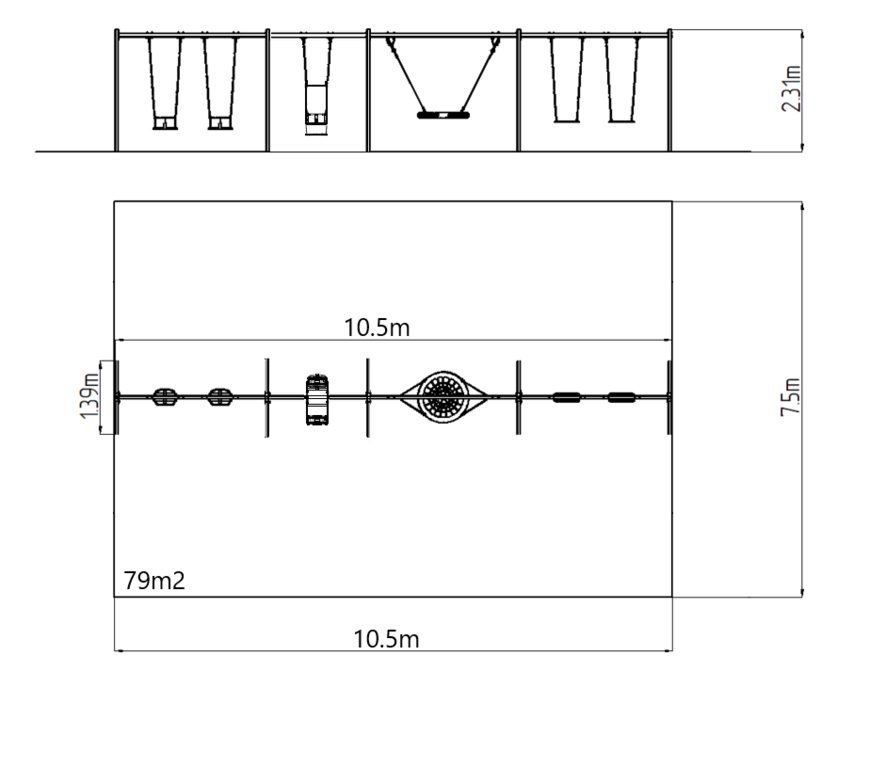 Plocha potrebná pre montáž: 10,5 x 7,5 m