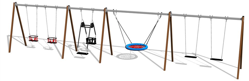 Sedadlo Baby je vyrobené z gumy a je vystužené hliníkovou vložkou. Sedadlo „Hniezdo” je vyrobené z polypropylénového lana z vysoko pevnostného vlákna. Sedadlo Normal hojdačky je hlinikové, obalené mäkkou a pohodlnou gumou. Závesné laná sú vyrobené z materiálu HERKULES (16 mm lana z polypropylénu s vnútorným oceľovým jadrom). Všetok spojovací materiál je pozinkovaný alebo nerezový.