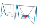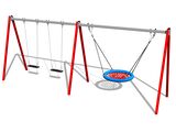 Reťazová trojhojdačka RH6321K - celokovová, výška pádu 1,5 m, 2x sedadlo Normal, 1x sedadlo Hniezdo (priemer 1 m). Na výber sú tri farebné varianty konštrukcie - hnedá, modrá a červená. Viac informácií