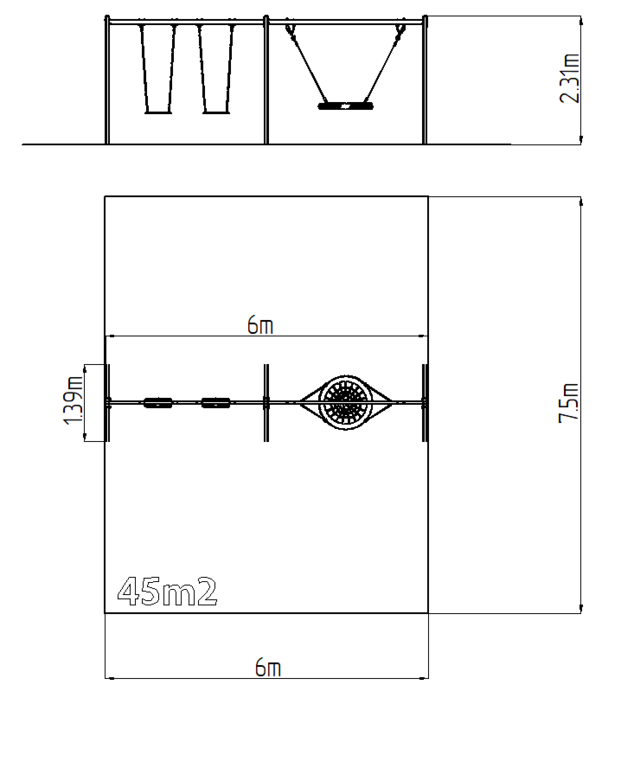 | Povrch, tlmiaci pád: | podľa normy EN 1177 45 m2 |