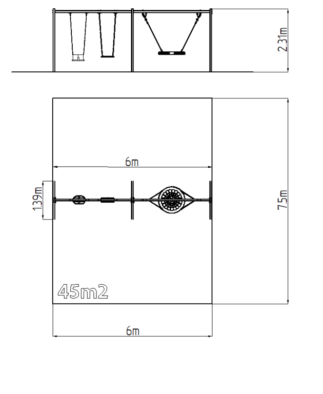 | Povrch, tlmiaci pád: | podľa normy EN 1177 45 m2 |