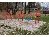 Reťazová trojhojdačka RH3222K - celokovová, výška pádu 1,5 m, 1x sedadlo Baby, 1x sedadlo Normal, 1x sedadlo Hniezdo (priemer 1 m). Na výber sú tri farebné varianty konštrukcie - hnedá, modrá a červená. Viac informácií