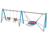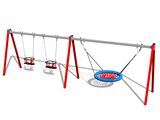 Reťazová trojhojdačka RH6323K - celokovová, výška pádu 1,0 m, 2x sedadlo Baby, 1x sedadlo Hniezdo (priemer 1 m). Na výber sú tri farebné varianty konštrukcie - hnedá, modrá a červená. Viac informácií