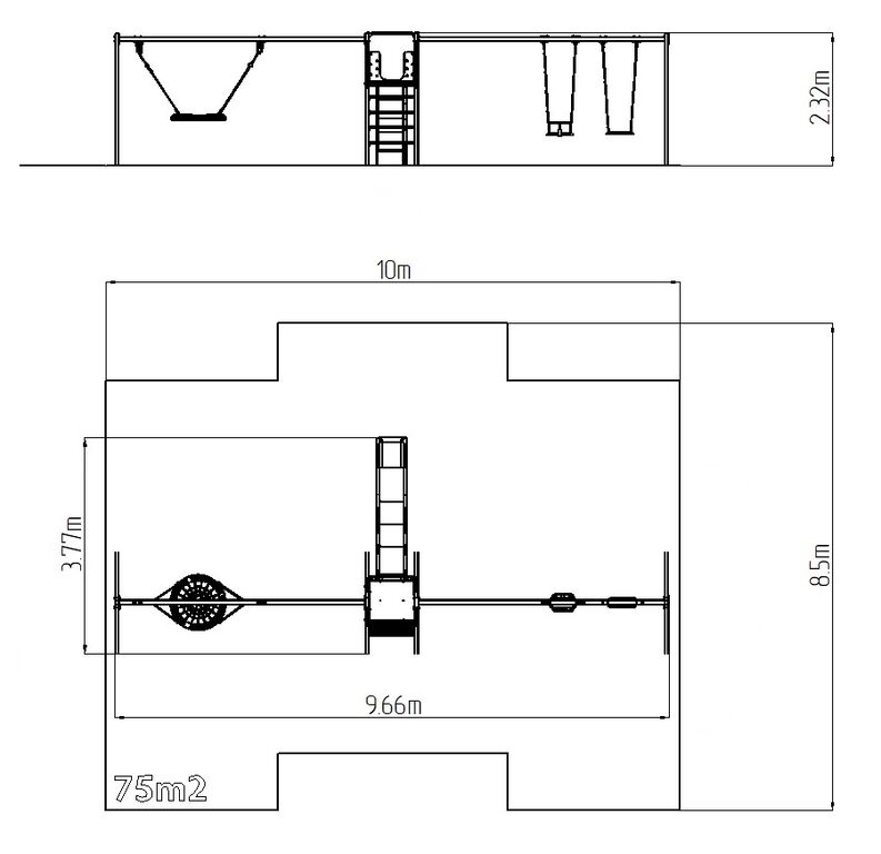 | Povrch, tlmiaci pád: | podľa normy EN 1177 75 m2 |