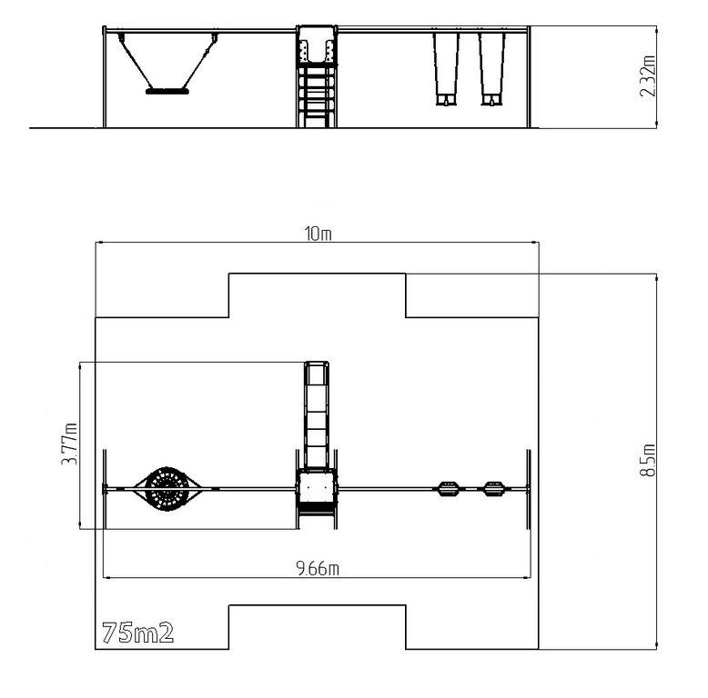 | Povrch, tlmiaci pád: | podľa normy EN 1177 75 m2 |