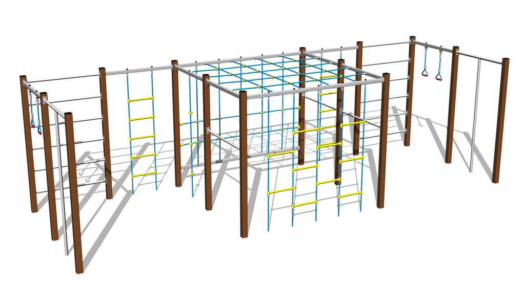 Šplhacia sieť, rúčkovacia sieť, šplhacie lano a lanový rebrík sú vyrobené z materiálu HERKULES (16 mm lana z polypropylénu s vnútorným oceľovým jadrom) a sú spojené plastovými spojmi. Všetok spojovací materiál je pozinkovaný nebo nerezový.