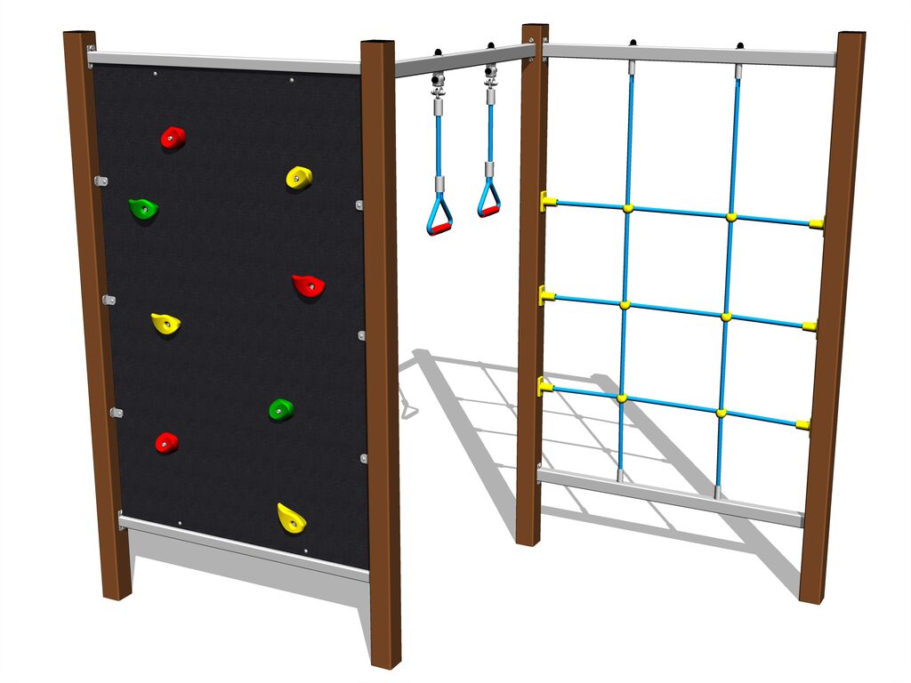 Šplhacia sieť, hojdacie lanové kruhy, lezecká stena. Viac informácií